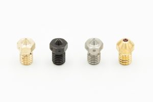 Nozzle apart from being the component that helps put down the filament in the desired shape, also focuses on bringing out the quality of your print. Smaller nozzles allow you to print in finner layer lines bringing out more improved quality of your print. Larger nozzles lay down thicker layer lines useful with larger component sizes.